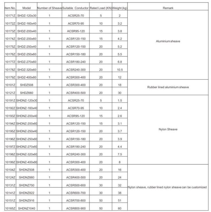 sleeves, swivel connectors, and pulling rope connectors can pass through the groove. The sheaves are made of aluminum alloy or high strength nylon.